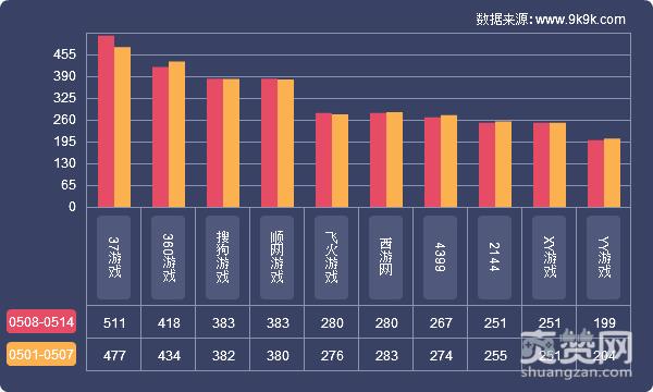 点评:本周各运营平台主打游戏开服情况较上周有所变化,37游戏将《烈火封神》推为平台主打游戏、开服频率达到了7服/天;360游戏、飞火游戏和YY游戏则同时将《神印王座》推为平台主打游戏,日开服频率皆保持在一个较高的水平;搜狗游戏则是将《烈火封神》、《乾坤战纪》推为平台主打游戏,并都保持着2服/天的开服频率。