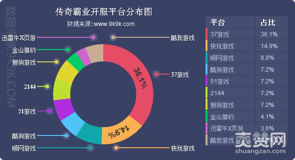 点评:《传奇霸业》本周开服总数也有所增涨,其在快玩游戏的开服占比已升至14.9%,新增分布占比平台迅雷牛X页游、酷我游戏。