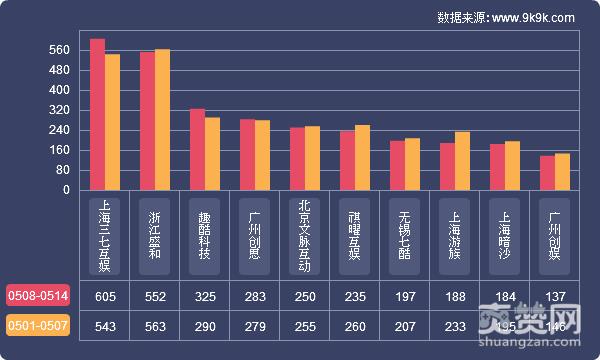 点评:本周运营平台开服排行前三:37游戏、360游戏、搜狗游戏;飞火游戏和西游网排名互换。本周榜单平台共开服3223组,占一线平台开服总数57.2%,与上周基本持平;其中开服前三平台共开服1312组,占榜单开服总数40.7%。