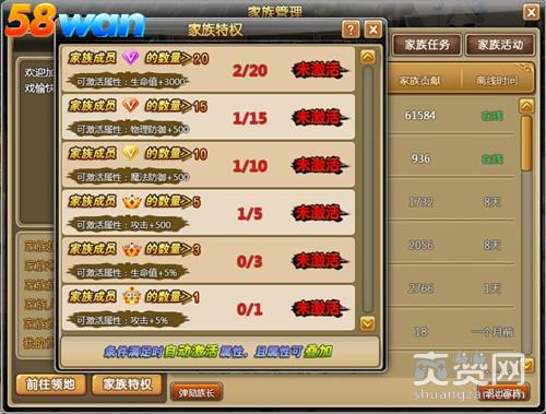 只有当玩家加入家族,才能享有家族已激活的所有特权属性,当玩家退出家族的的时候,那么玩家享有的家族特权属性也会从玩家角色上清除.清除家族特权属性,玩家的战力也会随之发生变化.不要轻易的变更家族,要慎重的考虑好变更家族的后果.因为脱离一个家族意味着这个家族的属性加成将会清零.