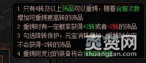 重铸时可勾选“降转保护”选项,同时增加些许元宝的消耗,对重铸的饰品进行保护,重铸时则必定不会获得-2转的饰品。