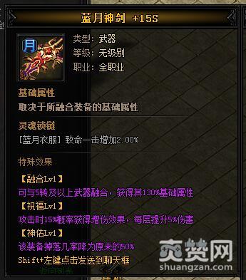 拆分的方法是到神炉处,点击蓝月神兵中的神剑神甲,然后在弹出的对话框中选择一项。这里我们选择的是蓝月神剑II。
