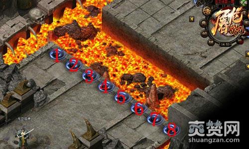 进入地图后,可以看到8个传送口,只有其中一个能传送到下一区域,每层地图有三块区域,一共三层。龙卫迷宫一共有三种走法,每天随机一种,下面附上三种走法的数字表示(数字与图中红色数字相对应)。