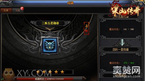当玩家点开XY游戏《梁山传奇》的成就系统,便可以看到与之并列的勋章界面。勋章分为十阶,每一阶勋章又含有五星,当达到五星的时候便可以晋升到下一阶勋章。从第一阶一星开始,玩家便能够获得职业攻击力加成。随着勋章的星阶越来越高,攻击力加成自然也越来越多,让你见谁都是一刀秒!