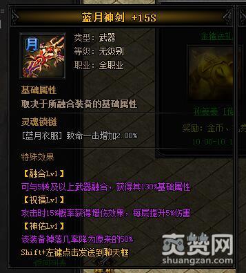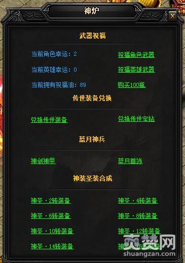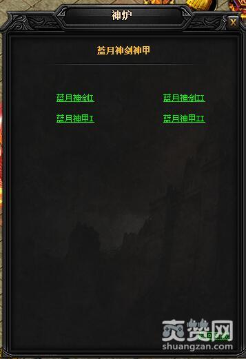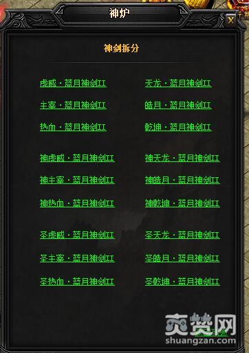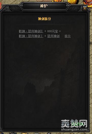 拆分的方法是到神炉处,点击蓝月神兵中的神剑神甲,然后在弹出的对话框中选择一项。这里我们选择的是蓝月神剑II。