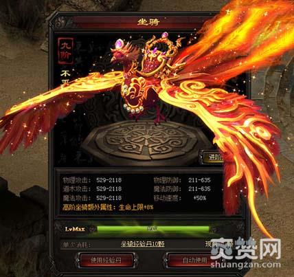 游戏中,坐骑共分十阶,每阶有十级。消耗坐骑经验丹可以增加坐骑经验,坐骑达到十级进行升阶,升阶会有一定的成功几率。 从一阶的的卢,二阶的闪电豹,到六阶的凶兽穷奇,八阶的圣火麒麟,九阶的不灭凤凰,十阶的神兽青龙。简直是让人口水流不停啊,想想都觉得兴奋,更不用说游戏中你要骑着它们进行各种活动了。