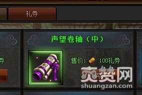 当然,玩家也可以在商城-礼券栏中用100礼券进行购买,每日限购20次,一共可以获得400000声望。