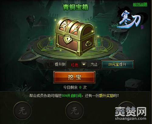 玩家每天都有若干次的帮派宝箱挖宝机会,每个宝箱需要一小时的开启时间,成功开启可获得经验、帮贡、珍兽舍利。9377《寒刀》里,帮众之间可以互相协作开箱,可以减少一半的开箱时间,协助者也能获得对应奖励哦!帮众之间互助互利,何乐而不为!