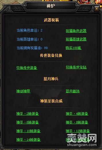 拆分的方法是到神炉处,点击蓝月神兵中的神剑神甲,然后在弹出的对话框中选择一项。这里我们选择的是蓝月神剑II。