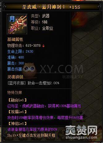 圣虎威·蓝月神剑II+888元宝=圣虎威·蓝月神剑I+蓝月神剑