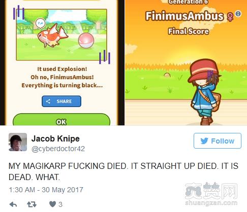 玩家们发现原来宝可梦真的会死亡的,系列20年的历史中一直未正面表现宝可梦的死亡,却在这款衍生手游中集中表现,许多玩家一时无法接受千辛万苦培育的鲤鱼王居然死于各种意外,尽管游戏中已经多次提醒触发类似事件会“相当危险”。
