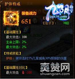 三、护体特戒:被攻击时有5%的几率减免30%受到的伤害;