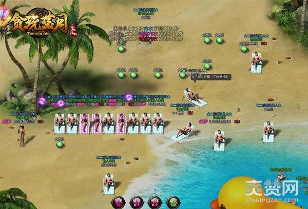 玩家在规定时间内进入活动场景,可选择在海滩玩沙子、下海游泳、海边晒太阳,每种行为都能获得不等的经验。如使用了日光浴状态,可获取更多经验收益。期间,你可以对其他玩家进行挑逗、推油来获取额外经验。但要小心别人给你砸西瓜,因为被砸中西瓜之后,会相应的减少经验。如果你在海岸上捡到不明物品,请不要惊讶,记得上交给二小姐领取神秘奖励。沙滩与美人,经验与金币,《贪玩蓝月》2017暑期全新休闲版本,撩妹赚经验两不误。还等什么,赶紧来《贪玩蓝月》畅享不一样的夏天吧!