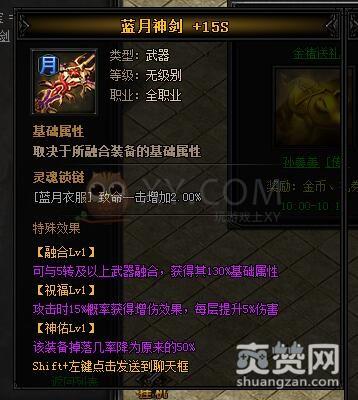 拆分的方法是到神炉处,点击蓝月神兵中的神剑神甲,然后在弹出的对话框中选择一项。这里我们选择的是蓝月神剑II。