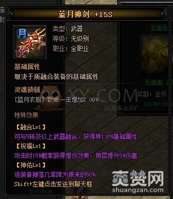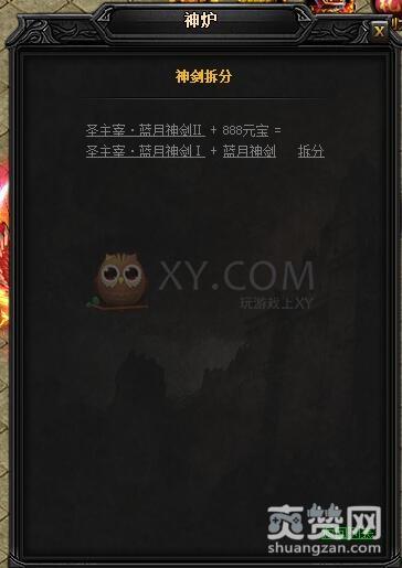 拆分的方法是到神炉处,点击蓝月神兵中的神剑神甲,然后在弹出的对话框中选择一项。这里我们选择的是蓝月神剑II。
