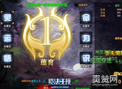 进入境界系统,想要让境界显示在玩家身上,就必须激活上图灵、运、悟、命、力、识六大境界达到一阶。如何激活上述境界?这就必须先了解下51《魔法王座》境界之书这个关键材料。这个关键的材料应该如何获得呢?打开境界转盘,通过抽奖可以获得,但这个活动往往有一定的时间限制。如果在规定的时间内没有把握好境界转盘,那估计想要全部激活还真有点困难。对此,51《魔法王座》小编可以负责任地告诉你,如果你是RMB玩家恭喜你,只需每日充值500元宝就一定能获得一次转动转盘的机会。