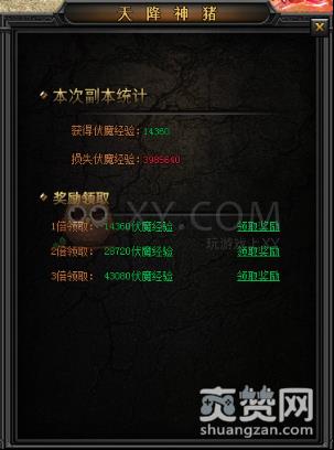 副本通关后,可以选择多倍领取经验,伏魔经验升级更快哦!