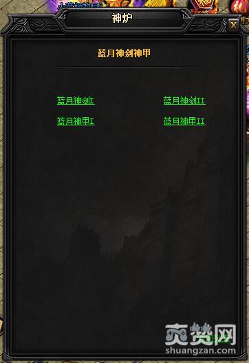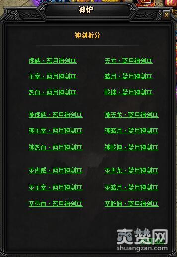 拆分的方法是到神炉处,点击蓝月神兵中的神剑神甲,然后在弹出的对话框中选择一项。这里我们选择的是蓝月神剑II。
