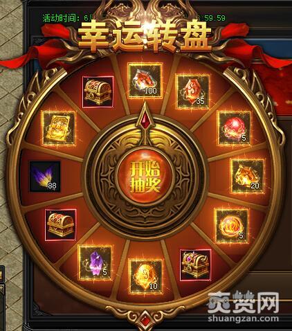 转盘上的道具分别是:英雄纹章*100、传世宝钻*35、高级轮回丹*5、水晶纹章*20、高级修为丹*5、璀璨首饰宝箱、传世精魄*10、魂石结晶(中)*5、玲珑首饰宝箱、神羽*88、幸运称号卡和光耀首饰宝箱。