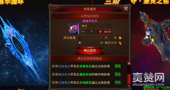 如果你绑定元宝比较多,可以通过消耗绑定元宝来购买。同样,兑换商城里面的荣誉商城也可以兑换,魔法农场种植作物也可以获得,还有农场商店也能兑换到魂器升阶石。看来傲天魔法王座中获取这种材料的方式还是比较多的。