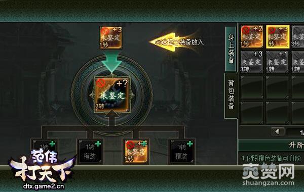 玩家将待升阶装备以及4件同等级橙装一起放入升阶系统中,使用装备升阶石即可对装备进行升阶,一旦升阶成功即可让装备提升一个等级,装备除了强化等级会少量浮动外,其他附加属性均不会改变。