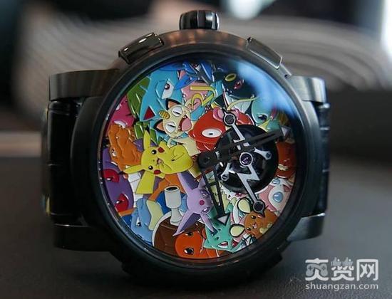 任何一个土豪都能看着手里的劳力士同时说出6个国家的时间,但是对于一个坐拥百万家产的游戏玩家而言,他们有且只有一个选择,那就是这只陀飞轮“精灵宝可梦”手表。这个手表是如此之贵,你甚至可以花这钱去找任天堂制造一只皮卡丘了……这个金光闪闪的手表上,深受喜爱的皮卡丘骄傲地坐在覆盖烤漆的奢华手工表盘正当中,而在它周围则是那些耳熟能详的经典小精灵:杰尼龟,喷火龙以及耿鬼。看着它们出现在一只比大多数法拉利都要贵的激光雕刻手表上,是一件令人激动的事。