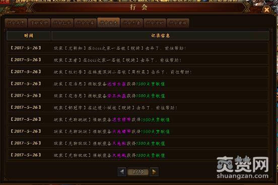 行会信息代表行会内会员每天的动态,比如“今天谁又捐款了,谁谁谁又领走了一些装备了,谁在什么地方被谁杀掉了”。这些是傲天烈火封神行会会长、副会长和长老应该关心的事,一般玩家看看就好。