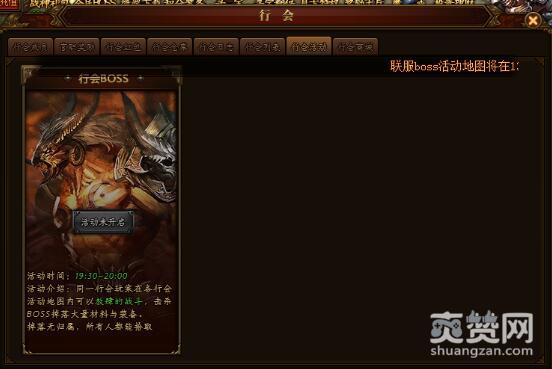 傲天烈火封神行会有着自己的活动场所,行会BOSS活动你不能不看,活动时间如上。进入活动地图就放开手脚战斗吧,大量材料与装备都是属于行会兄弟们的,无归属大家都可以拾取,千万别抢伤了和气。