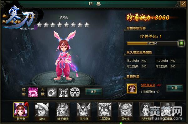 在玩法方面,2217《寒刀》最具特色的莫过于珍兽系统,该系统有着千奇百怪的珍兽,他们形态各异,又拥有各自独特而神异的天赋技能,每只珍兽拥有一个技能和三个天赋。玩家在游戏中,可以培养一只珍兽作为宠物,通过喂养舍利子来增加珍兽的经验值,收集珍兽碎片帮助珍兽升星,星级越高则属性越强,外观也会变得更为强大。强大的珍兽在战斗中可以帮助玩家御敌杀怪,玩家每次可出战、助战三只珍兽,还可以使用珍兽们的主动技能。