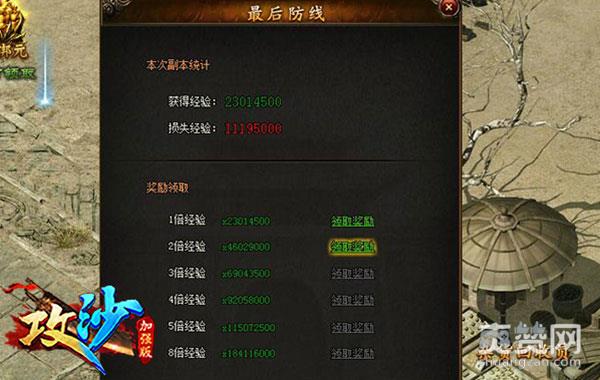 最后防线副本限时15分钟,时间一到玩家将被传送出副本。在NPC处玩家可以看到本次最后防线副本的挑战情况,包括所获经验和损失的经验。这时玩家可以选择免费领取单倍经验,或是花费元宝领取多倍经验,最高可以领取8倍经验,你就说强不强?!