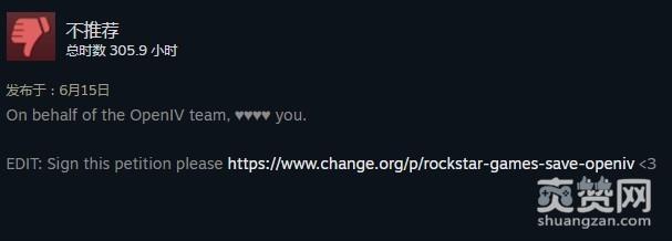 除了因为R星早就存在的“误封”行为而给出的差评外,OpenIV的风波是被提到最多次的事件,当然这次玩家们所针对是仅仅是Take-Two的行为,R星颇有躺枪之嫌。