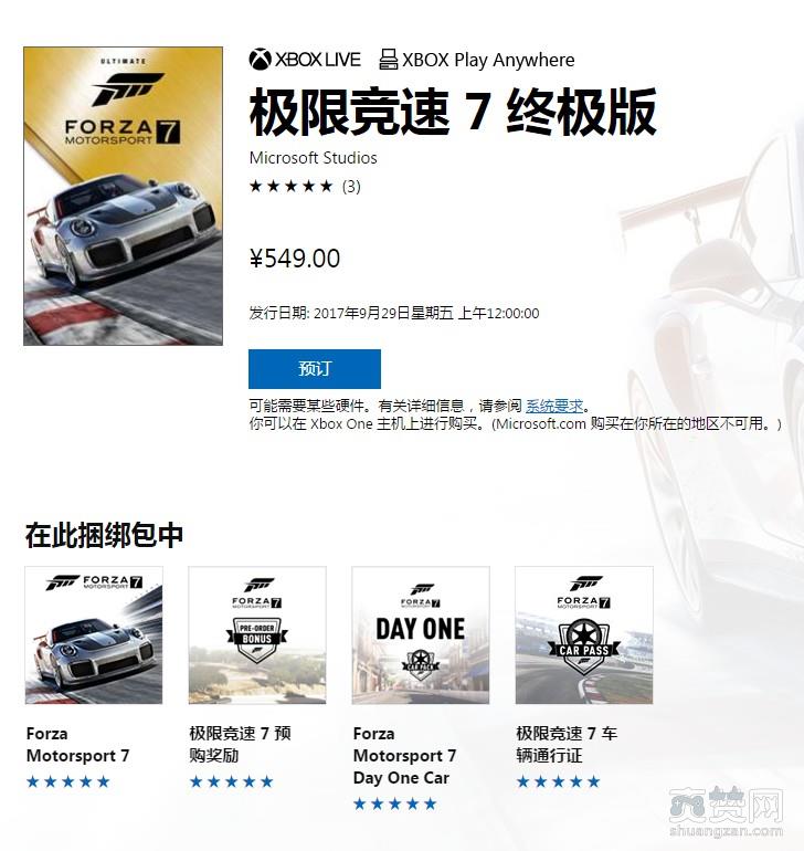 刚刚在E3展上惊艳亮相的赛车竞速大作《极限竞速7》终极版正式上架了国区Windows商店,售价为549元人民币,目前该捆绑包内将包含《极限竞速7》预购奖励、首日车包和车辆通行证。《极限竞速7》将会在10月7日正式发售,登陆Xbox One/Xbox One X和Win10平台。