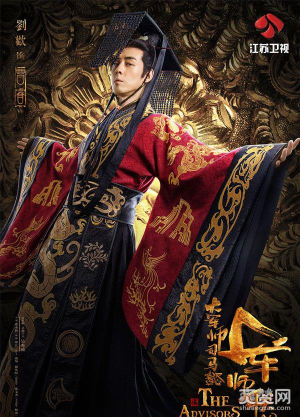 该系列的15张海报中,唯有吴秀波饰演的司马懿,李晨饰演的曹丕、刘欢饰演的曹睿,三位男主演的色彩搭配是红袍配黄金,霸气夺屏而出。海报中的司马懿红袍舞动,鹰眼如钩,隐忍有度、无冕自威,彰显出司马懿为安大魏天下,孤身赴险,迎战血雨腥风的决绝。