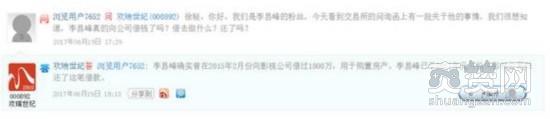 随后有李易峰的粉丝向欢瑞世纪提问李易峰是否真的向公司借钱,借钱目的以及是否归还,欢瑞世纪作出回应:李易峰确实曾在2015年2月份向影视公司借过1800万,用于购置房产。李易峰已于2017年元月份向影视公司归还了这笔借款。