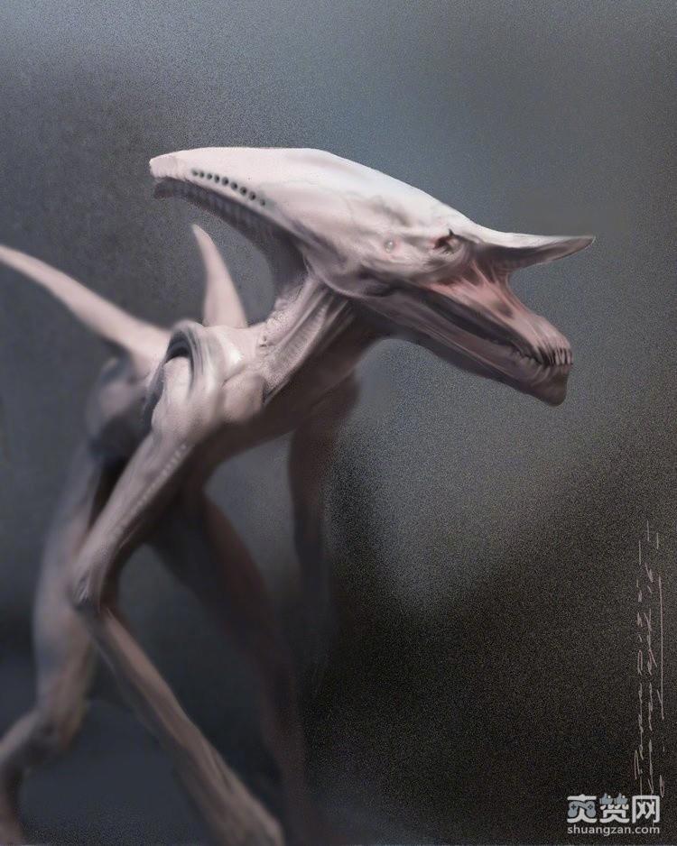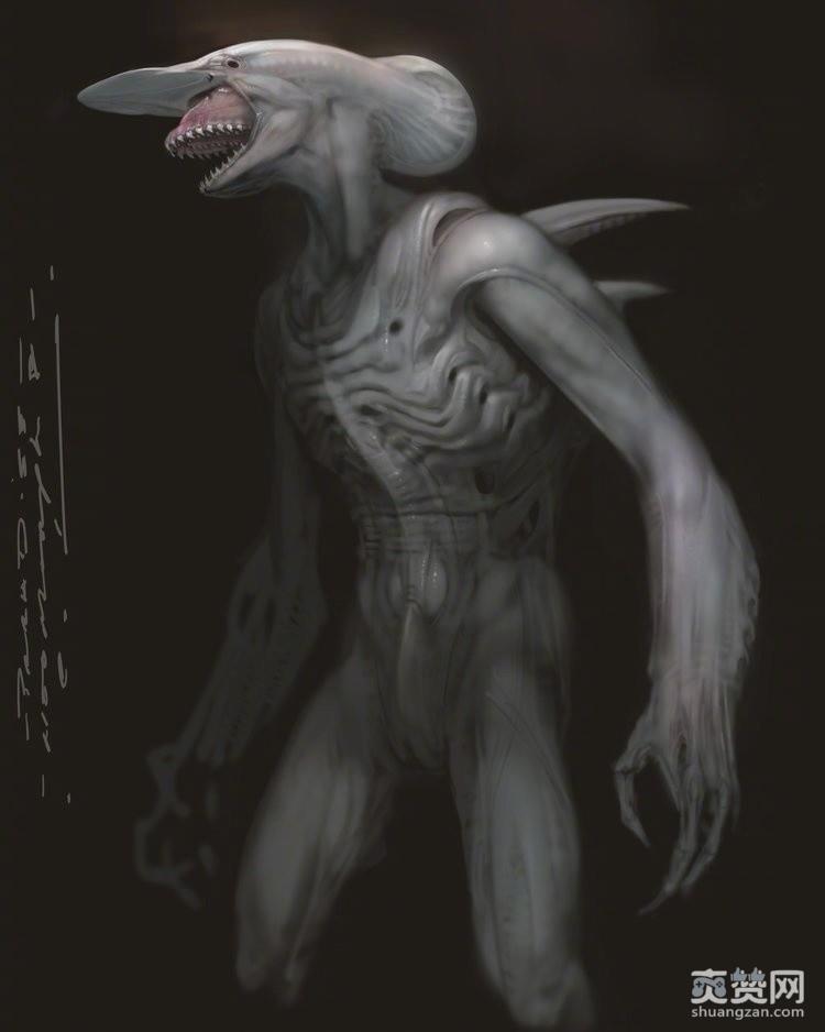 《异形:契约》中有了新品种异形Neomorph。今天,我们找出了艺术家Carlos Huante(《普罗米修斯》)曾分享他为《契约》做的早期概念艺术,这恐怖的生物当时设计更像哥布林鲨(最终形态参考了哥布林鲨+螳螂+演员Javier Botet的动捕)。