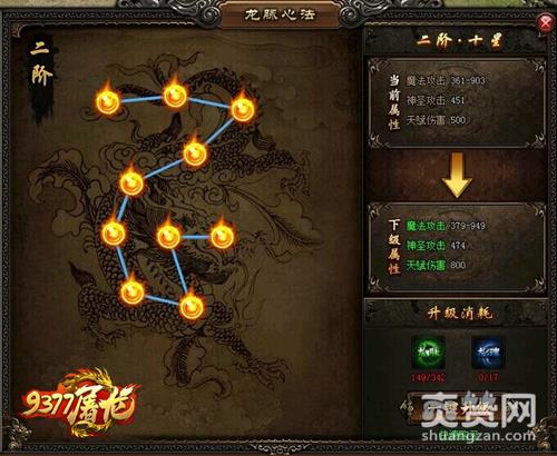 在9377屠龙战记开服第七天,玩家等级达到转生5,即可开启龙脉心法系统。9377屠龙战记龙脉心法开启后,玩家可以消耗龙脉值、龙魂值替其升级。游戏中的龙脉心法共有十阶,每阶又细分为10级哦。