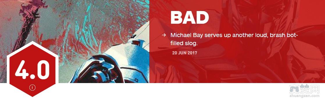 IGN则表示,爆炸贝又带来了一部声势浩大,非常自嗨,又令人难以忍受的《变形金刚》电影。