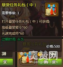 商城的热卖里还有8折的中型悬赏任务礼包卖。
