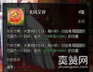 今天详细说一下婚姻系统。姻缘系统是必须要去培养的,实在不行,可以考虑开小号挂机结婚。为什么呢,主要是因为我们可以获得一个主动释放的伤害性技能。堪比神器。这个是龙凤呈祥的3级的技能说明。有条件的可以考虑继续升级。我们输出的伤害是指在规定时间内,打出的伤害。那么我们如果多一个伤害性技能,我们的输出数值会随着时间的推移,越来越高。该技能与我们面板攻击属性挂钩。与其他技能不共CD,而且其自身的CD非常短,只需要60秒。PK的过程中,挂机模式下可以自动释放,直接提高我们的爆发伤害。所以,无论在哪个方面,我们都必须升级这个技能。