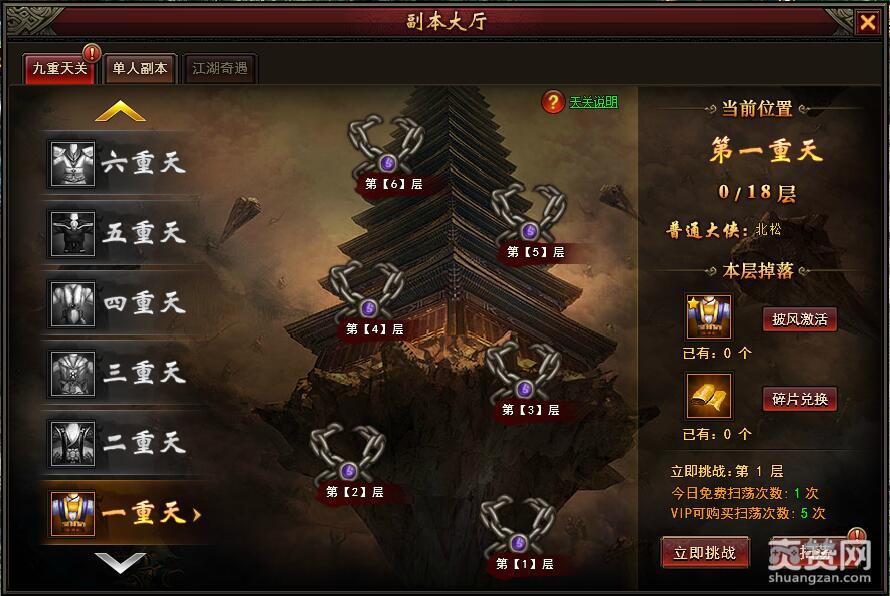 2.每一重天从第1层开始挑战,前1层未通过不可挑战下1层