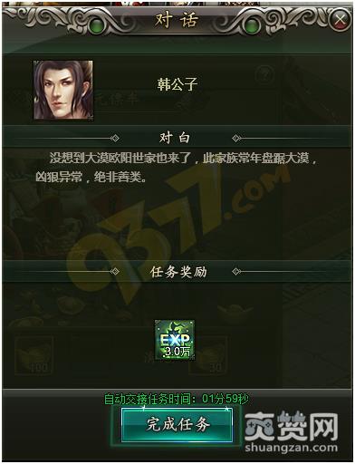 支线任务:在做主线任务的过程中,当然还有支线任务咯,支线任务除了获得大量经验之外,还可以额外获得特殊道具和大量银两,也是升级的不二法门。所以,记得支线任务也一定要完成呦。