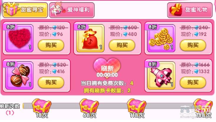 2、累计刷新达到指定次数,可获得额外豪礼哦,在“甜蜜福利”中每日求得爱神祝福,每日都可获得甜蜜礼物;