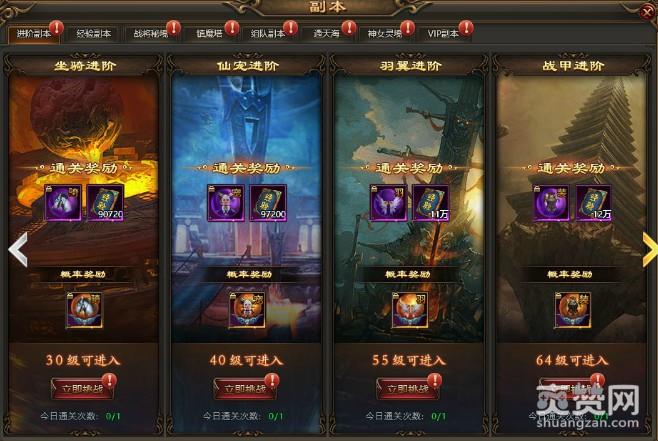 每日可通关各个副本一次,获得丰厚进阶道具和巨额经验奖励。