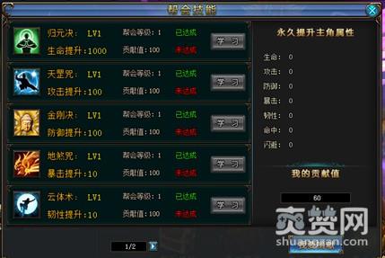 3、帮会技能