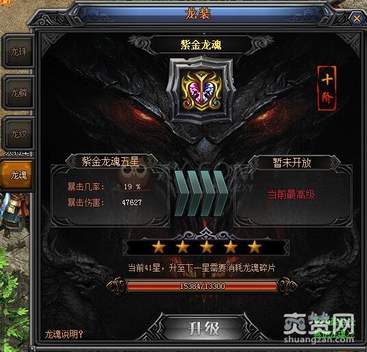 龙魂精华(小)增加龙魂碎片后,可在【龙装-龙魂】界面消耗龙魂碎片提升龙魂等级。龙魂等级提升后,玩家所扮演角色的暴击几率和暴击伤害都会上调。暴击在战斗时是非常给力的。一个暴击往往就能清除杂兵,以及给BOSS造成大伤害。