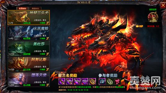 4.世界BOSS每个时间段固定刷新,击杀BOSS可获得大量稀有道具的奖励,对BOSS造成伤害的前三名和攻击最后一下的玩家将拥有专属掉落。