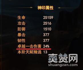 因为神印系统的亮点在于,升阶后的神印可以帮助你获得超强属性-卓越一击伤害,这意味着你在造成暴击时能够造成更高的爆伤,同时升阶神印还可以获得额外的天赋点数并提高神圣抵抗,帮助你同时攻破天赋系统的束缚~