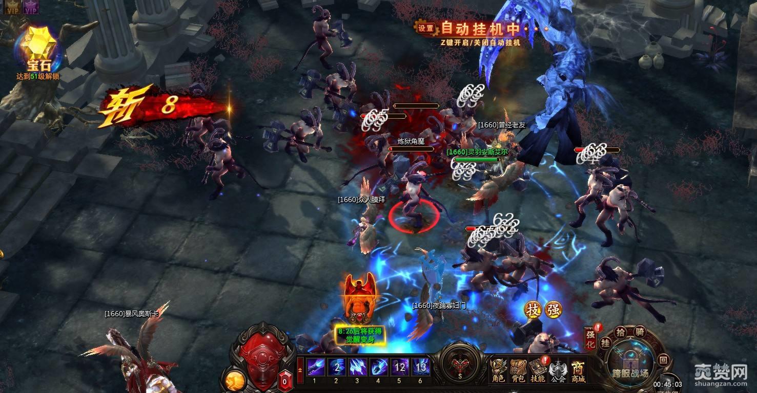 3、神魔争霸(20:00-20:30)活动时间内玩家可通过活动界面进入活动场景,随机分为神族和魔族,通过占领哨塔或击杀玩家获得本族积分,活动结束时积分高的阵营获得胜利,当然输的一方也是有对应的奖励。