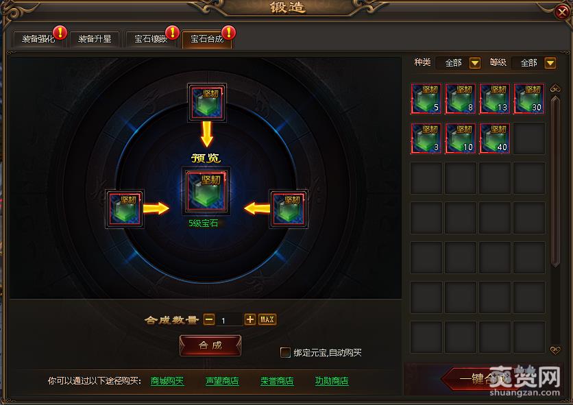 被替换的宝石可保留下来,3个同类同等级的宝石,可合成更高1级的宝石;