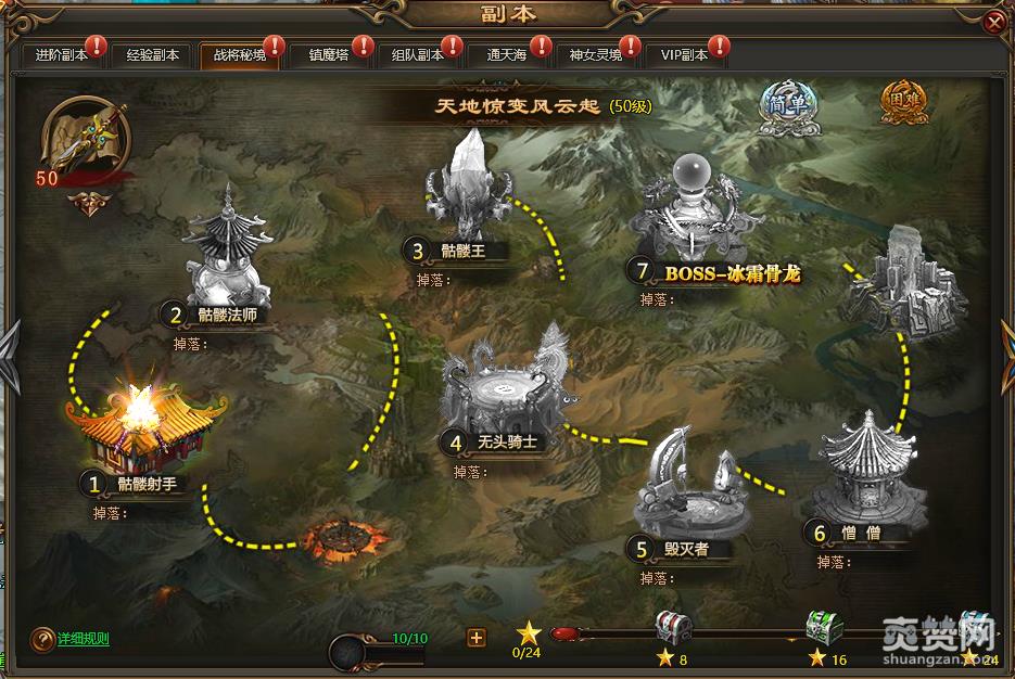 人物完成主线任务,随着等级的提升开放战将秘境,战将秘境副本艰险重重,建议达到推荐战斗力后再进行尝试。战将秘境章节随着通关前置难度逐步开放,随着仙友征战的脚步,难度逐渐加深,各位仙友需要不断提升实力去迎接战将秘境的试炼。